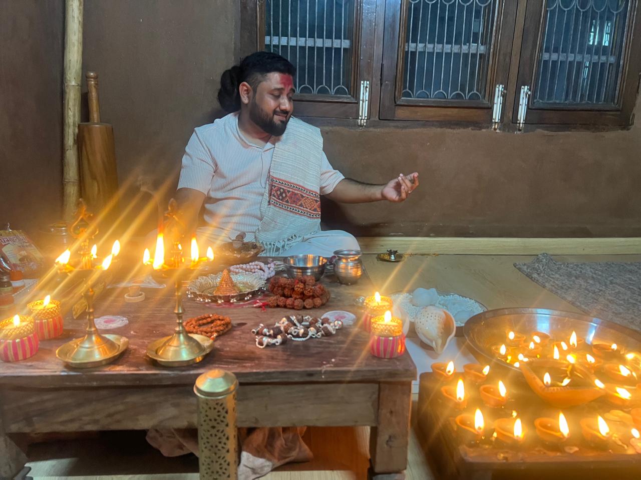 Rooted in classical Vedic Jyotish, Rudra Ji interprets the movements of planets and Nakshatras to understand karmic patterns and the unfolding rhythm of time. Known as a Kaal-Ganitagya, he performs precise hand calculations in the traditional manner taught by his Guru. His guidance brings clarity, preparedness, and alignment with the natural cycles of destiny.